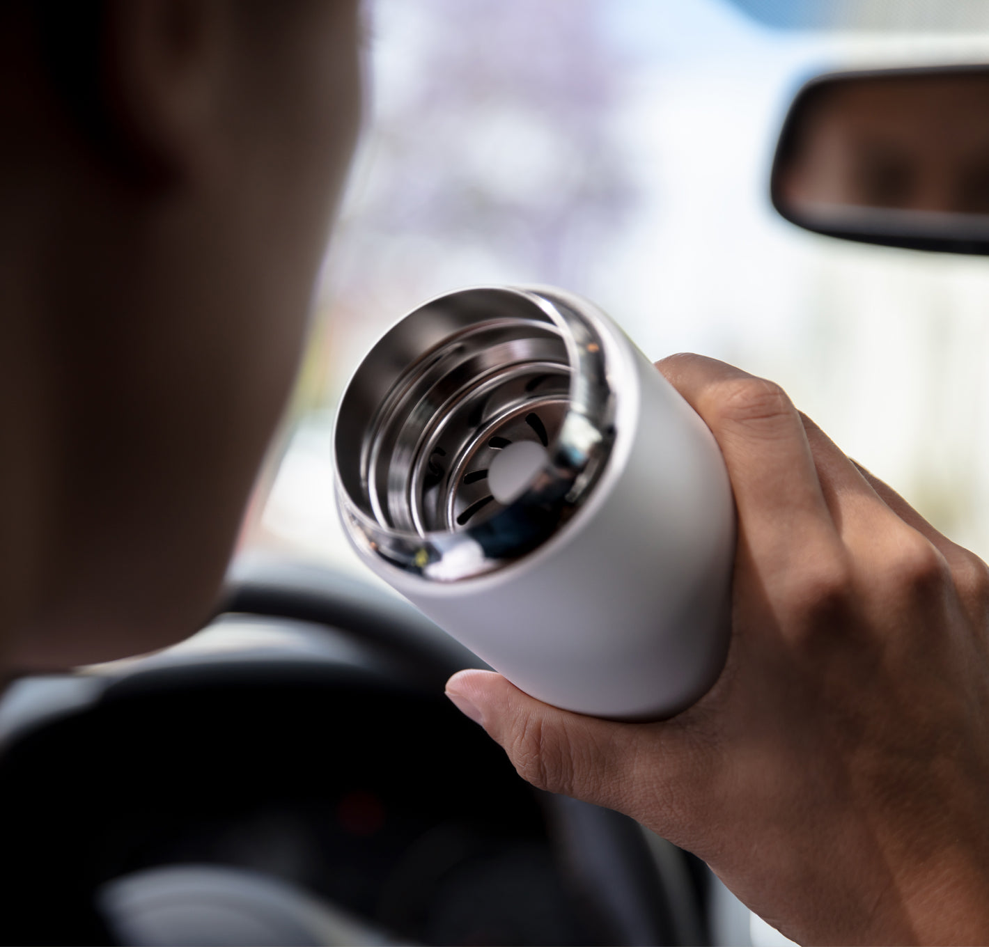A travel mug finally worthy of the coffee inside. Designed to amplify the senses and engineered to fit your travel needs with a snap-in splash guard and slim width, you can now enjoy coffee at its fullest on-the-go.
